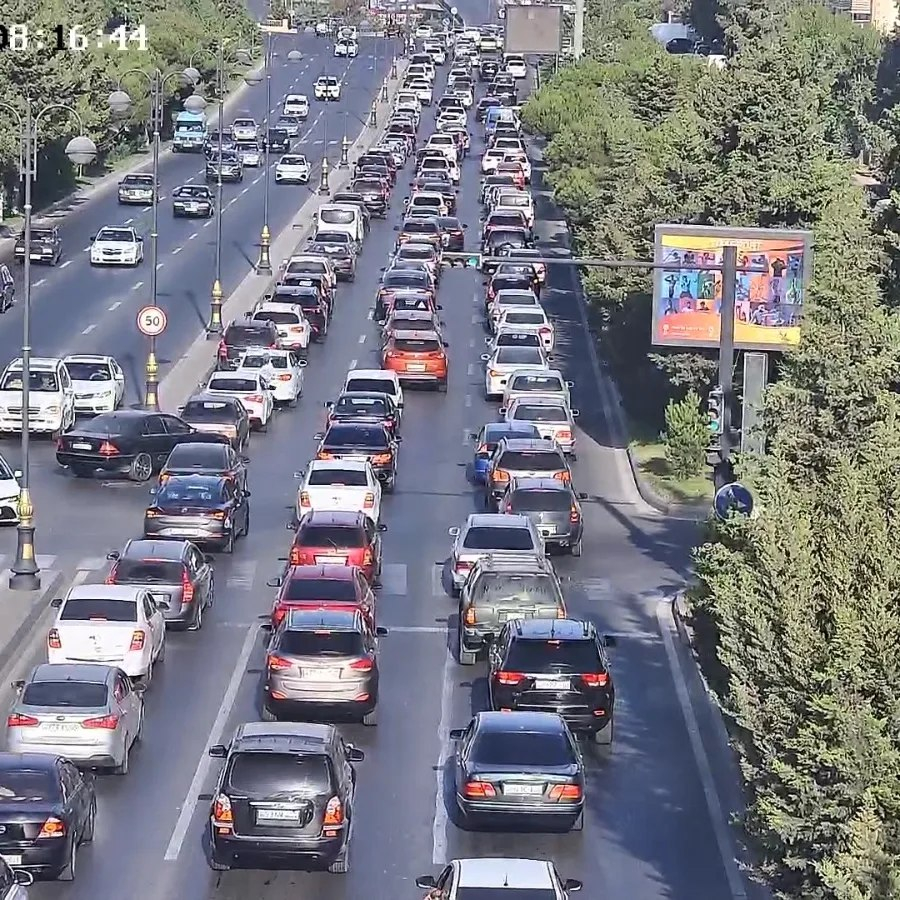 8. 8 Noyabr prospekti, Süleyman Əhmədov küçəsi ilə kəsişmədən mərkəz istiqamətində sıxlıq müşahidə olunur.