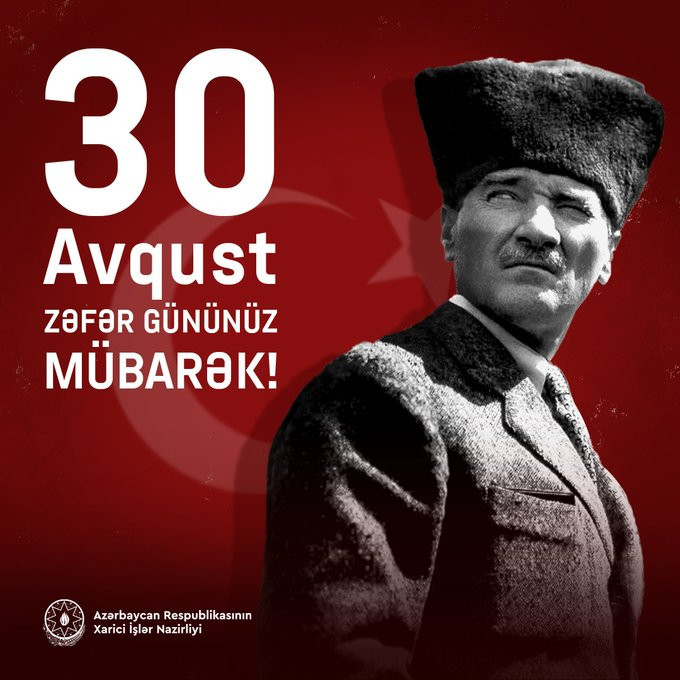 Azərbaycanın Xarici İşlər Nazirliyi Türkiyənin Zəfər Bayramı münasibətilə paylaşım edib.