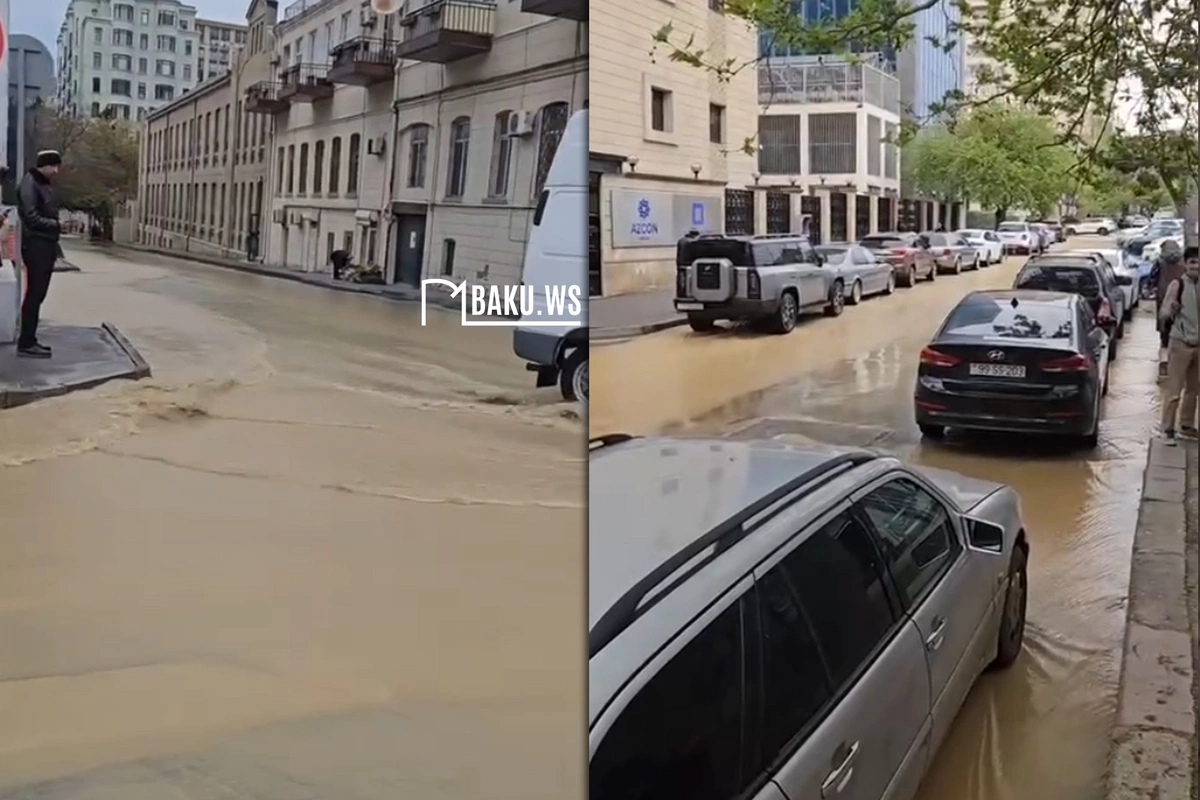 Paytaxtın mərkəzi hissəsində boru partladı - Su küçəboyu axır