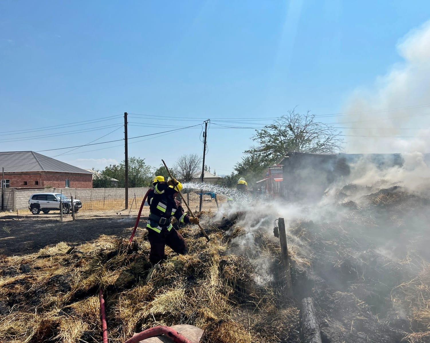Hadisə nəticəsində 6035 kq ot bağlaması və avtomobilin yük hissəsi yanıb, şinləri və digər hissələri, həmçinin vətəndaşa məxsus 1 mərtəbəli fərdi yaşayış evi yanğından mühafizə olunub.